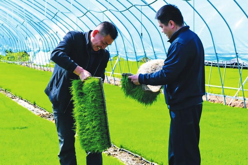 新质生产力,智慧农业先行先试。育秧大棚内,暖阳铺洒,喷水浇灌,“绿草”如茵。陈涛顺手拿起一盘绿油油的秧苗,欣喜地说:“新技术就是好!育出的苗像毛毯一样,怎么抖动都不会散。”