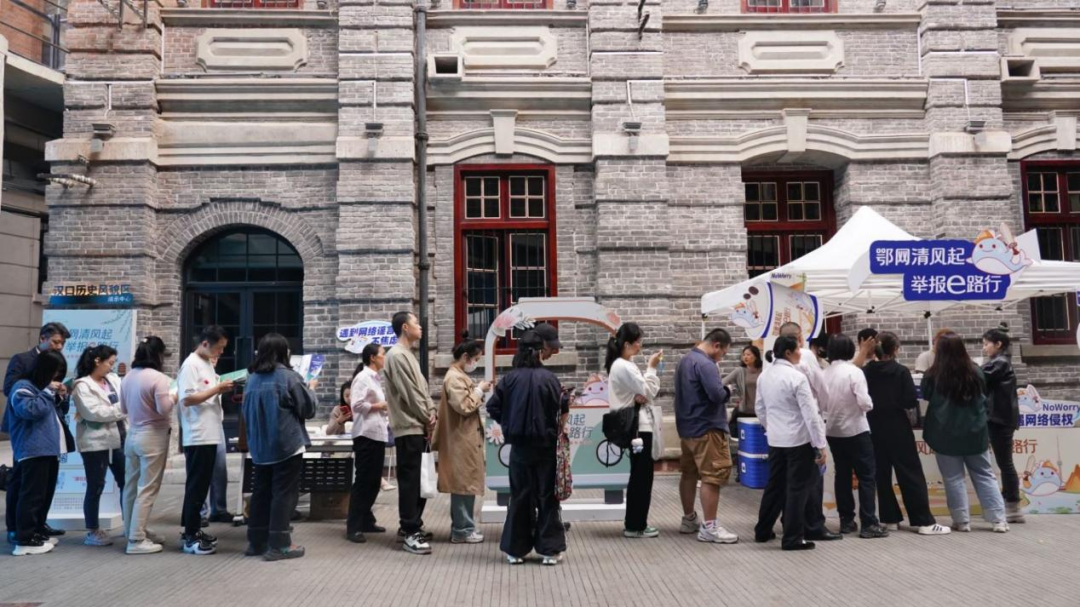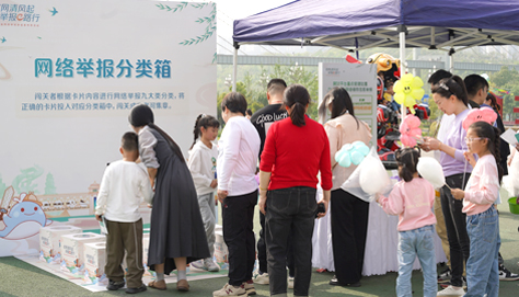 4月14日下午,在光谷中央生态大走廊举行了宣传周首场线下活动——“e键举报”网络举报辟谣互动体验。