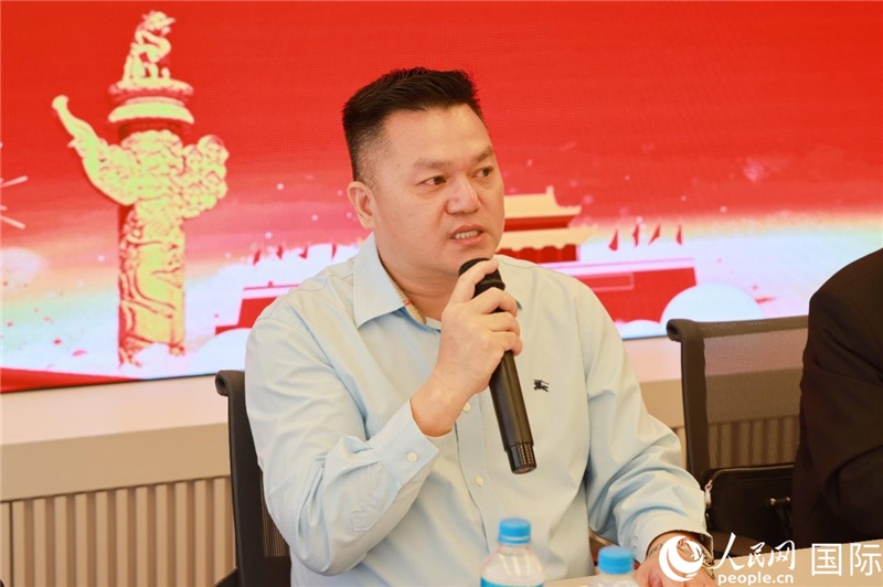 巴西和统会会长张小春在座谈会上致辞。人民网记者 陈海琪摄
