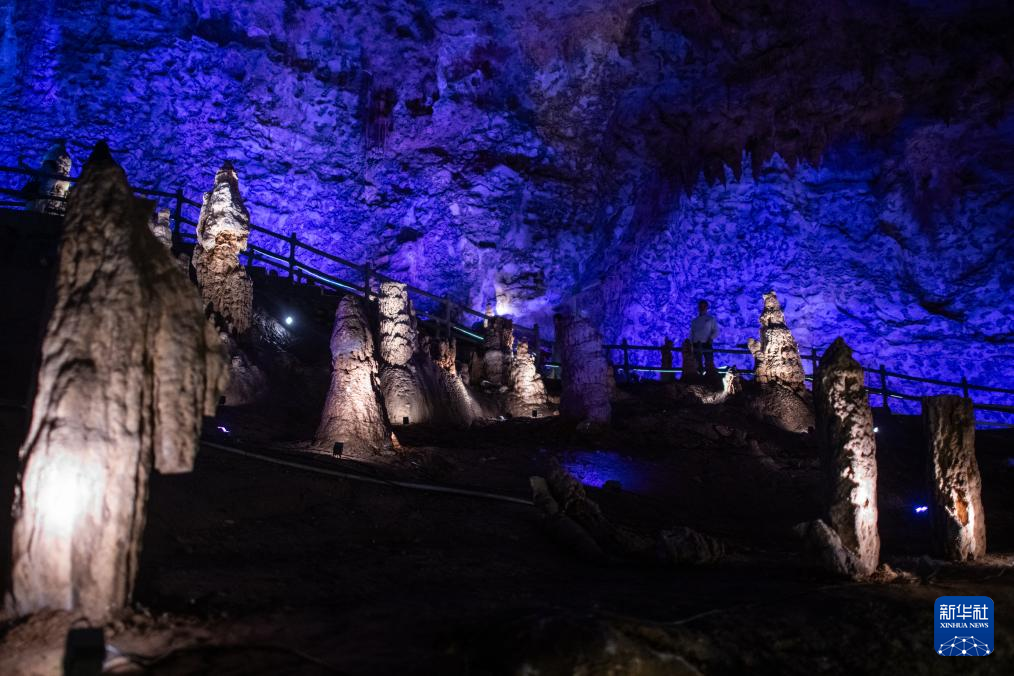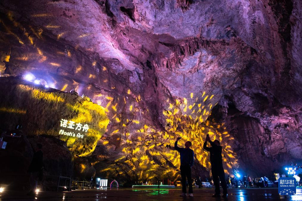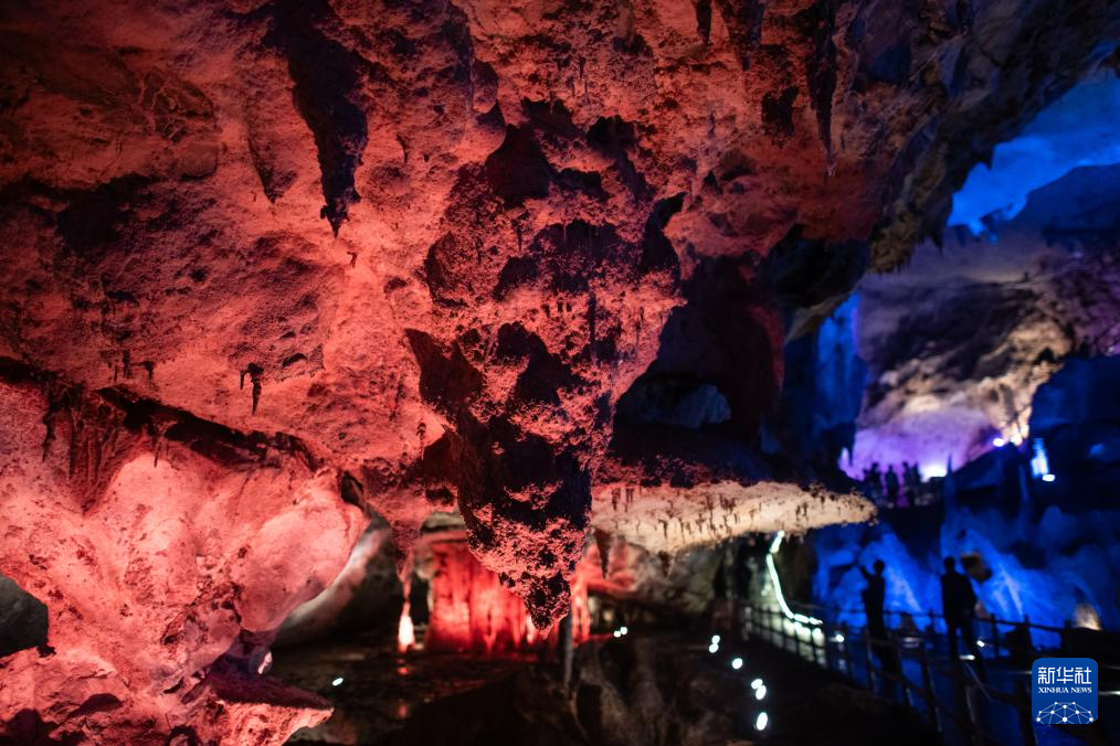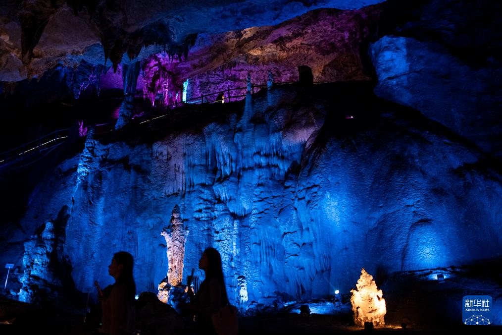 4月22日,游客在百洞峡主洞内参观。