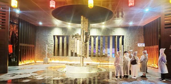 当晚天空下着雨,硕博考生们穿着雨衣有序入园。市城市建设投资控股集团有限公司安排4名金牌讲解员提供游园讲解服务。