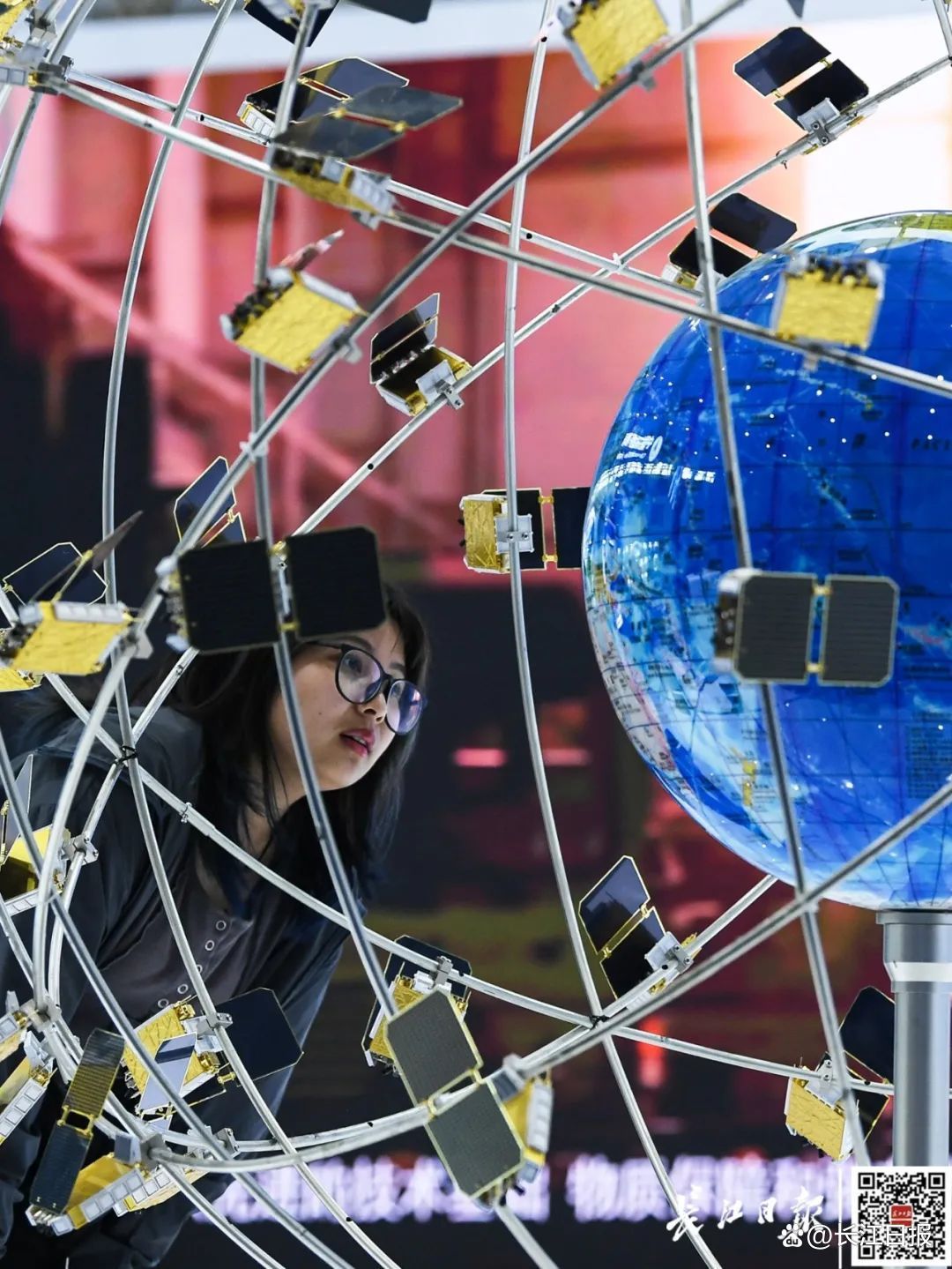 “航天科普系列展览”现场的卫星模型。新华社记者杜子璇 摄