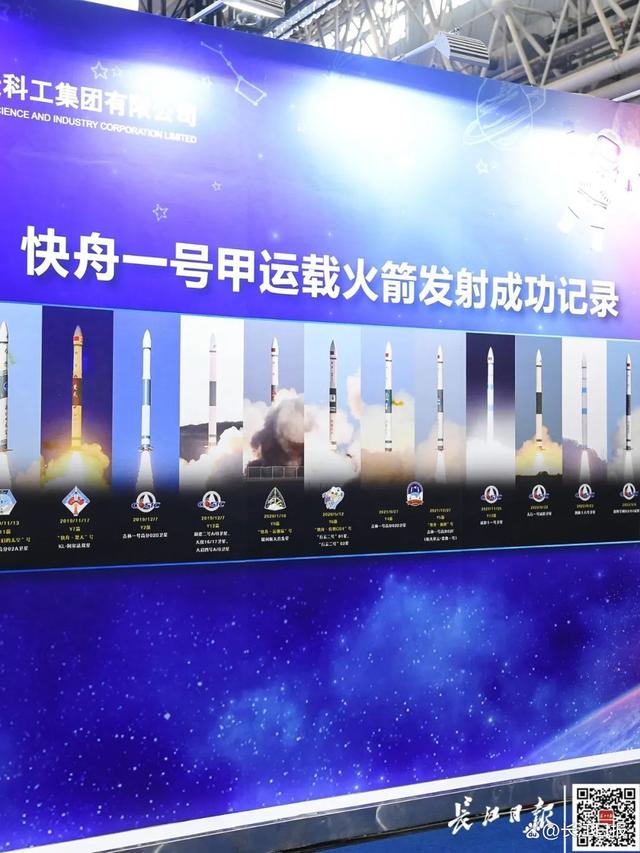 “航天科普系列展览”现场展出快舟一号甲运载火箭发射成功记录。
