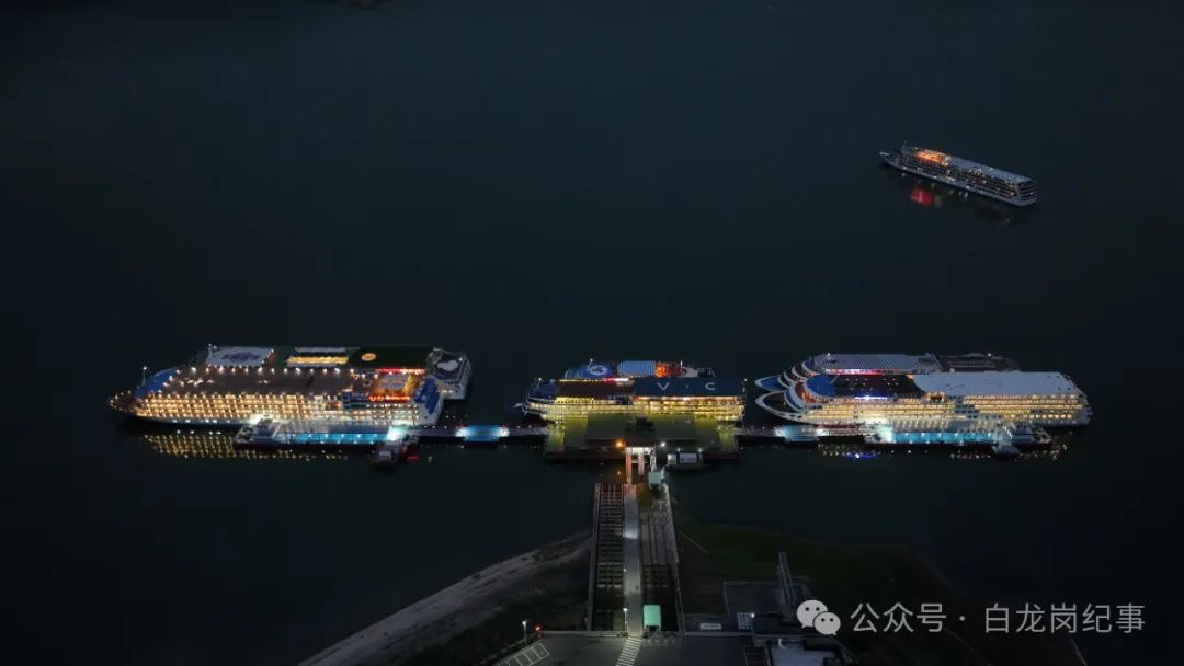 夜幕降临,华灯初上。晚上八点半,霓虹斑斓的“长江三峡1”纯电动游轮从三峡游客中心启航,天然塔、镇江阁,夷陵长江大桥和至喜长江大桥渐次出镜,两岸的城市光影与跨桥的动感灯光交相辉映。1000多名游客一起体验了一场别开生面的“水涨船高”过坝之旅。