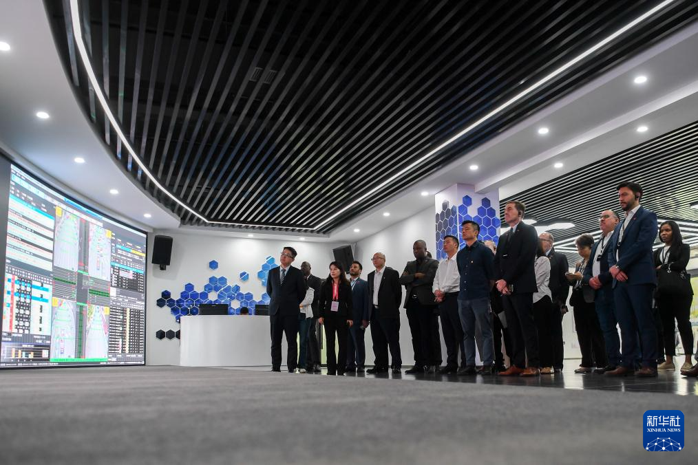 拉美和加勒比国家驻华使节、机构代表和记者在湖北(襄阳)国家级车联网先导区运营中心参访(4月22日摄)。