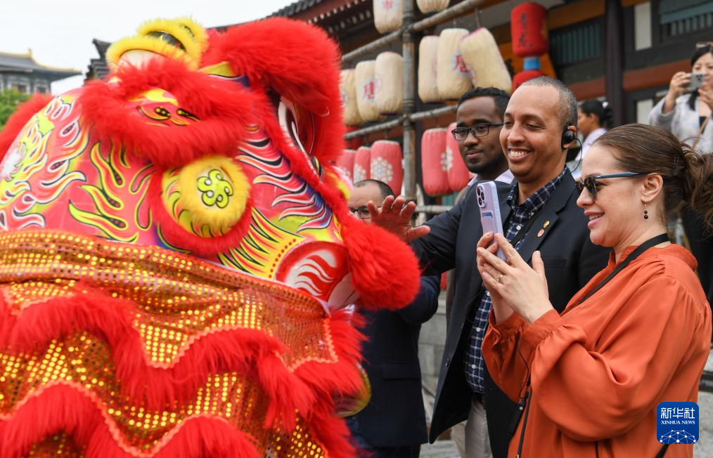 拉美和加勒比国家驻华使节、机构代表和记者在湖北省襄阳市唐城参访(4月22日摄)。