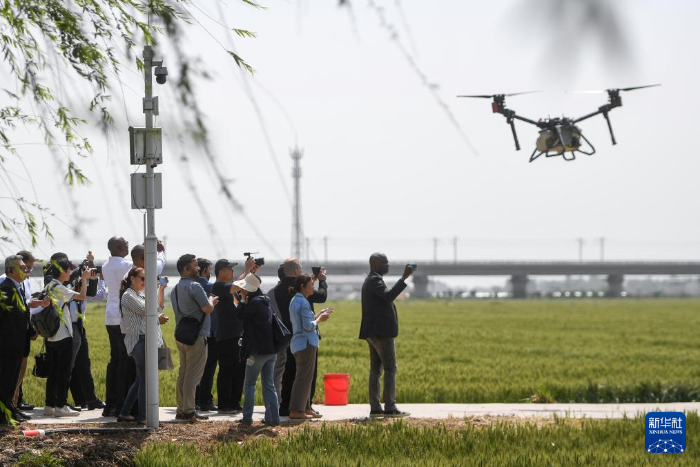 拉美和加勒比国家驻华使节、机构代表和记者在湖北省襄阳市湖北绿神农业科技有限公司参访(4月23日摄)。