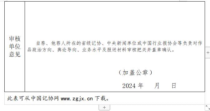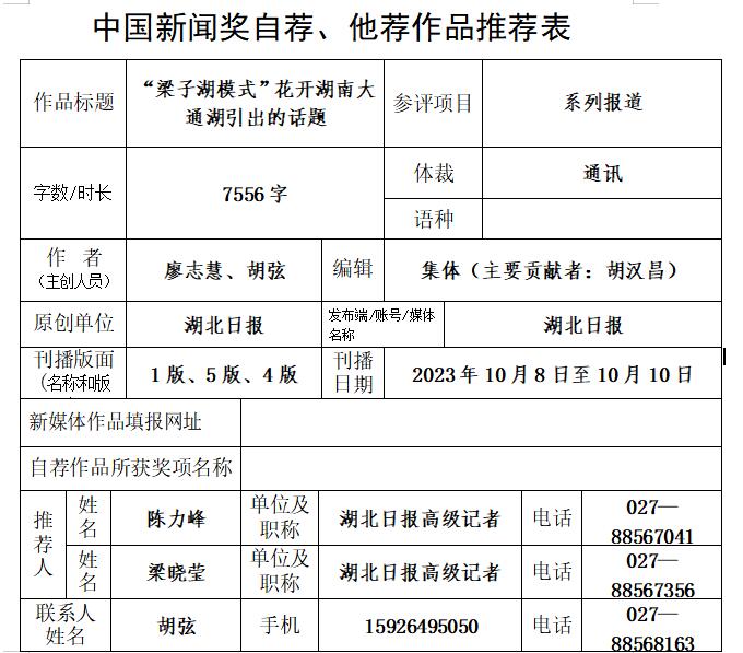 中国新闻奖参评作品推荐表