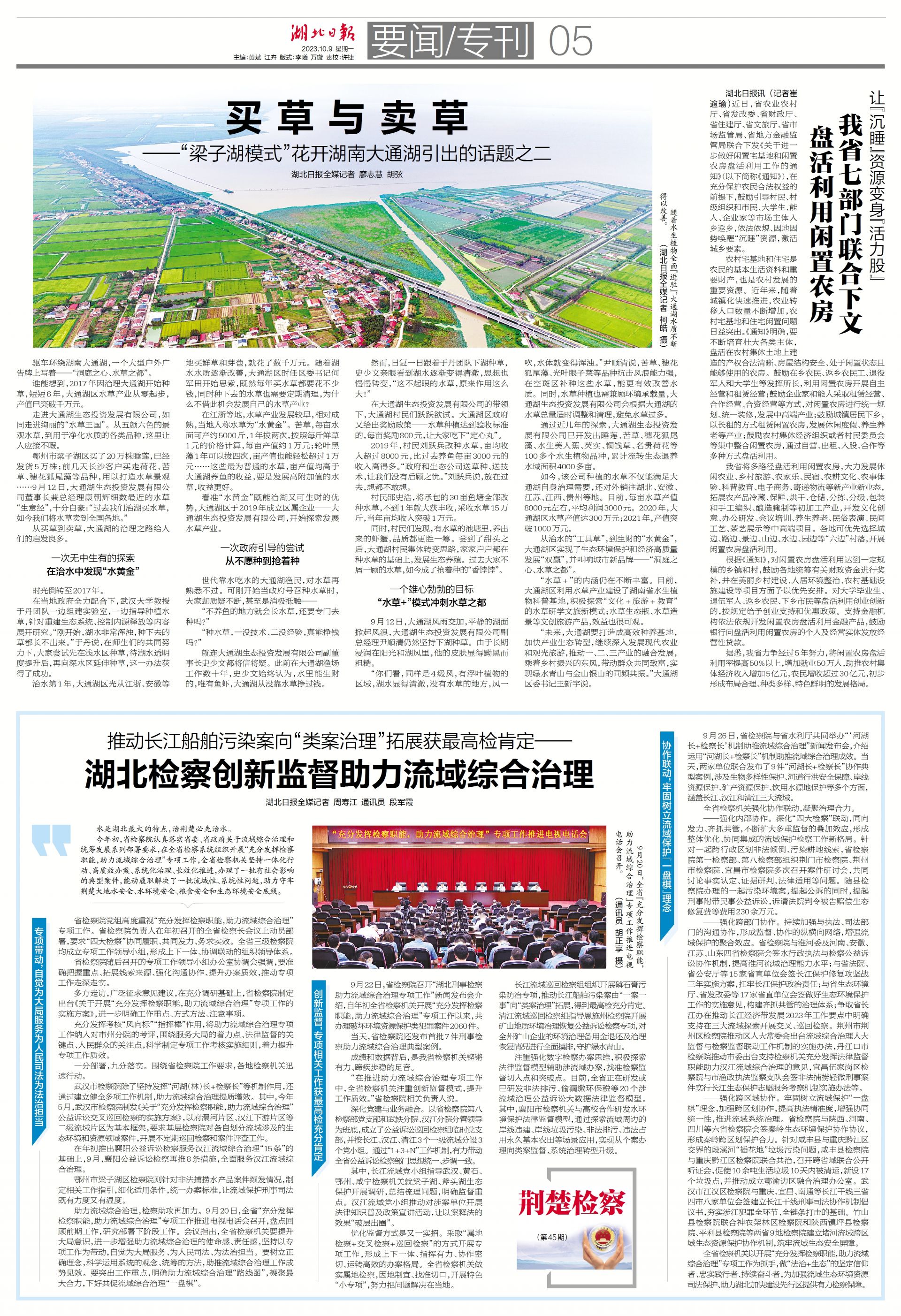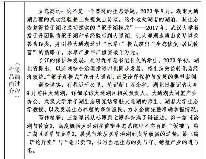 作品《“梁子湖模式”花开湖南大通湖引出的话题》
