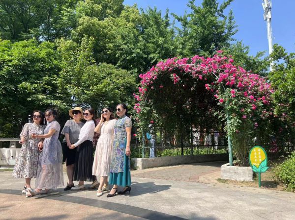 据园区管理人员介绍,盛装登场的月季花品种分为爬藤月季、红龙沙宝石和普通月季,一般4-9月开花,开花持续时间长。日常养护以修剪和施肥为主,冬季重剪夏季轻剪。此外,除月季花廊、花墙外,槭树园中占地面积20平方米的月见草也值得前去打卡(图二),月见草为柳叶菜科月见草属下的一个种,花朵以粉白色为主,花期5至7月,喜欢温暖气候。