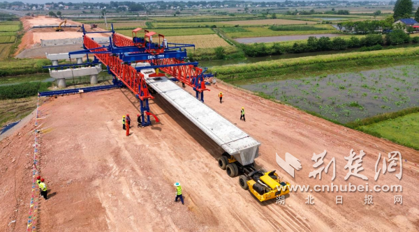 荆楚网(湖北日报网)讯(通讯员刘红霞、梁虎)4月26日,武松高速江陵至松滋段的三岔口大桥、王家台中桥,成功架设首片30米预制箱梁,提前达成“两翼齐飞”的目标,再次刷新项目建设的“进度条”。