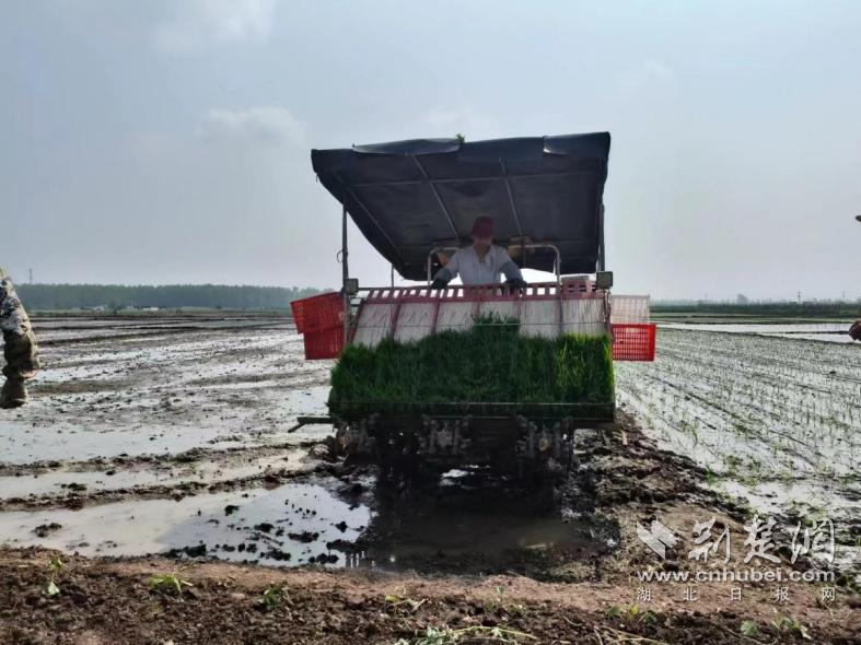 春雨润沃土,农事催人忙。当前,正值再生稻种植葱郁生长的时期,农民们正卷起一片片秧苗,将其运送到田间进行机器插秧。卷尺在稻穗旁反复测量,收割机在稻田里来回穿梭,一幅如火如荼的春耕备耕画卷映入眼帘。