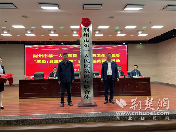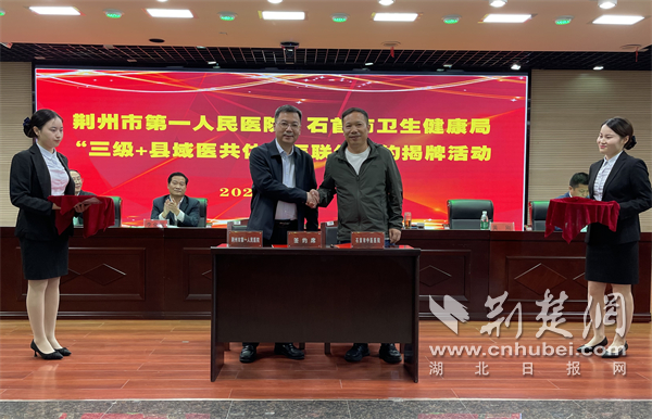 荆楚网(湖北日报网)讯(通讯员 杜川 郑丹 张世琳)“这是石首卫生健康事业发展的大喜事,更是石首医联体建设迈进新征程的里程碑。”近日,荆州市第一人民医院与石首市卫健局共建“三级+县域医共体”医联体签约揭牌仪式在石首市人民医院举行,石首市各级医疗机构将共享荆州一医优质资源,47万石首群众在家门口就能享受到优质医疗服务。