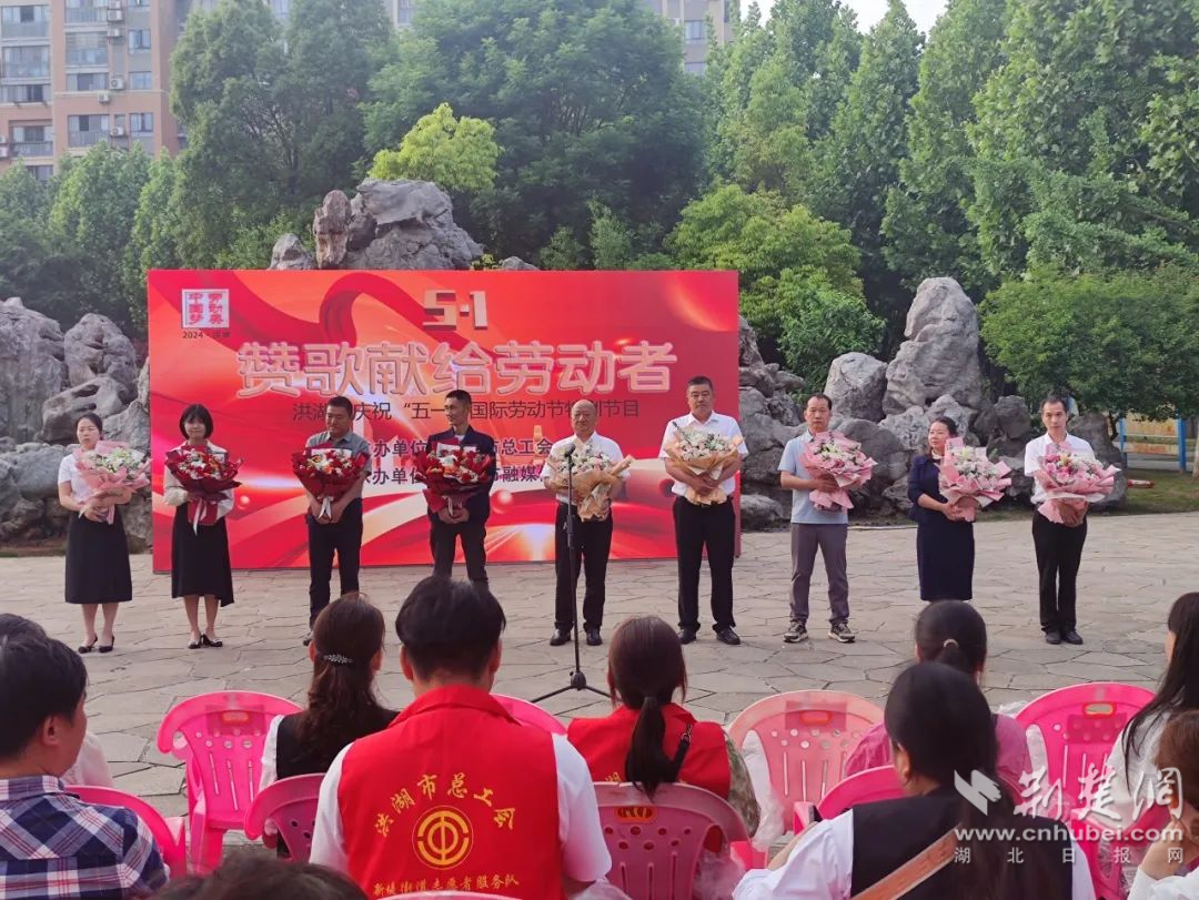 荆楚网(湖北日报网)讯(通讯员束涛 肖英杰)近日,洪湖市总工会、市融媒体中心在劳模主题公园联合举行“赞歌献给劳动者”洪湖市庆祝五一国际劳动节特别节目。全市9位受到各级表彰的劳动模范、先进工作者、工匠和各行各业50多名劳动者代表共聚一堂,共话中国梦,礼赞劳动美。