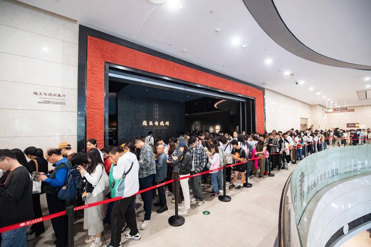 在越王勾践剑、曾侯乙等热门展厅前