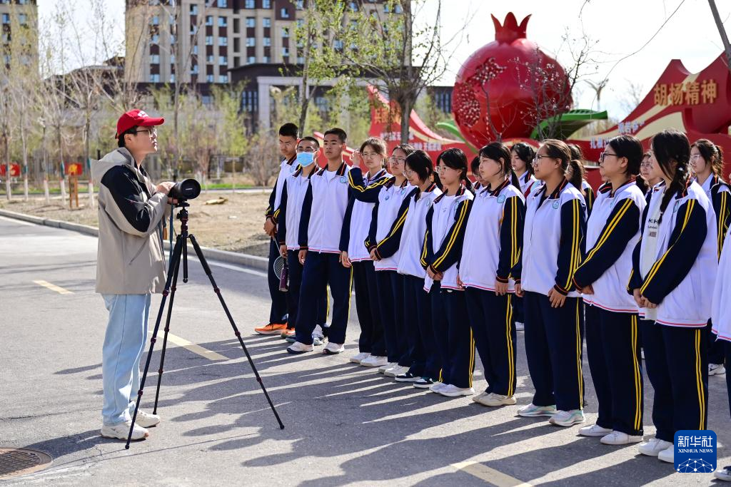 在新疆双河市高级中学,研究生支教团成员王仡柯(左)给同学们上摄影选修课(4月11日摄)。新华社记者 丁磊 摄