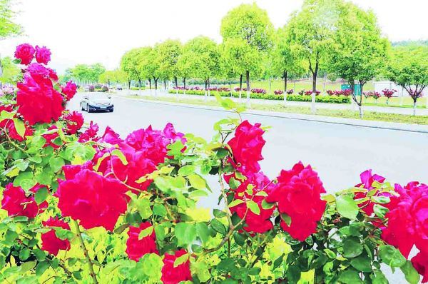 连日来,在漳河新区荆楚大道、荆山大道两侧,经过漳河新区城管服务中心多月的精心养护,一丛丛、一簇簇香气浓郁的藤本月季花争相开放,红的、粉的,美艳无比,编织成绵延不断的“城市花墙”,提升了城市颜值。(张彩云 摄)