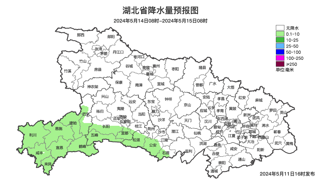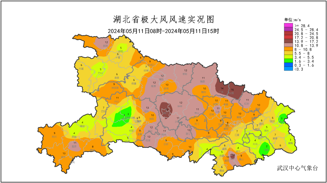预报来源:武汉中心气象台2024年5月11日16时预报