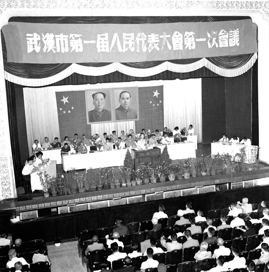 1954年8月20日上午,汉口中南剧场迎来了三百多名意气风发的“新中国的主人”——第一届武汉市人大代表。他们中有全国或全市著名的工业和农业劳动模范、先进工作者,也有爱国守法、服从工人阶级领导、愿意走国家资本主义道路的民族资产阶级代表;有机关干部、工程技术人员,也有街道居民、私营工商业者。