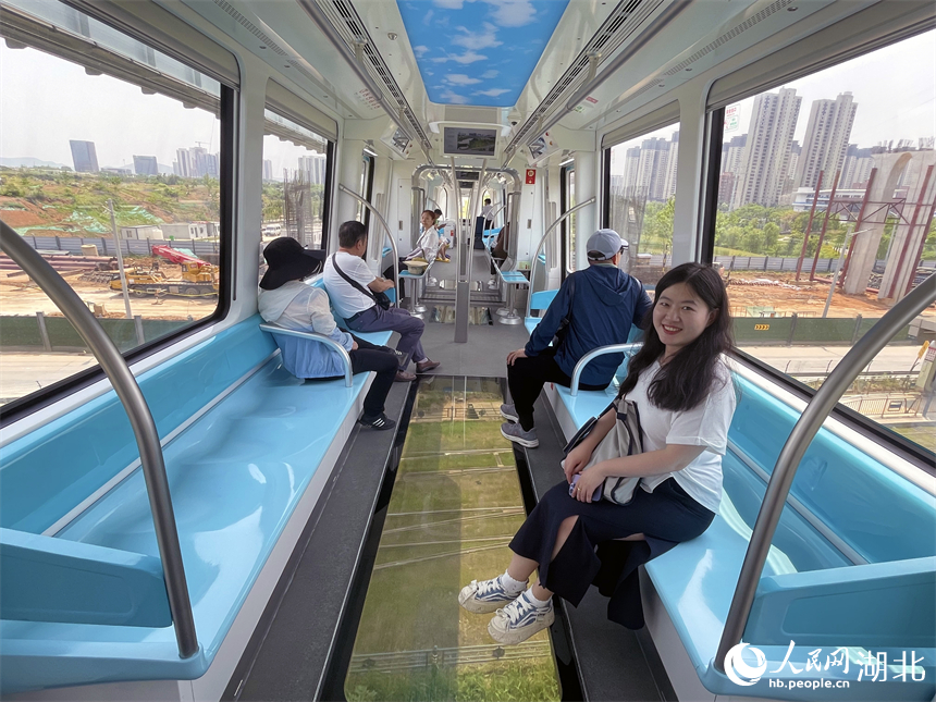 武汉光谷空轨成为新晋网红打卡点,市民纷纷前来体验。人民网记者 周恬摄