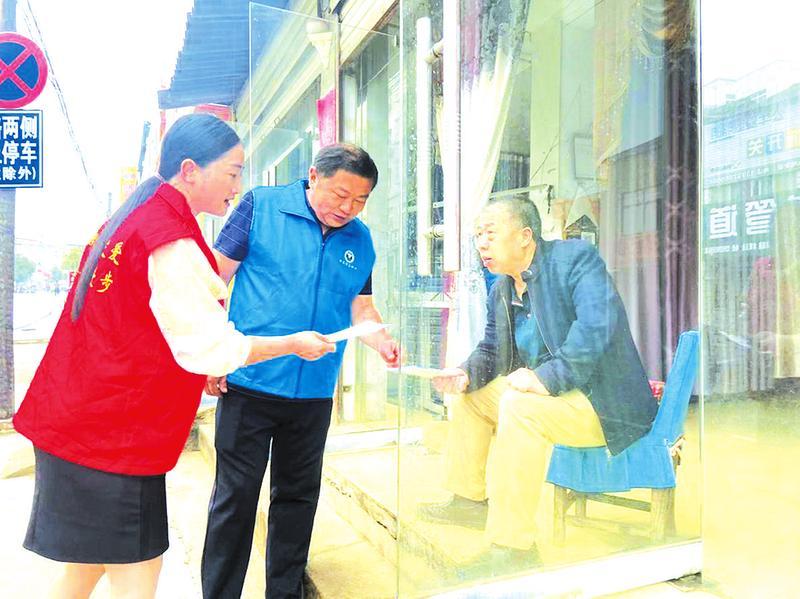 近日,随县高城镇财政所组织党员干部深入辖区街道,开展防灾减灾宣传活动。活动现场,工作人员向过往的居民发放防灾减灾知识手册、宣传彩页等,通过现场讲解、互动问答等方式,向居民讲述防灾减灾和安全生产的重要性,共同构建安全和谐的社区环境。(随州日报通讯员刘晨宇摄)