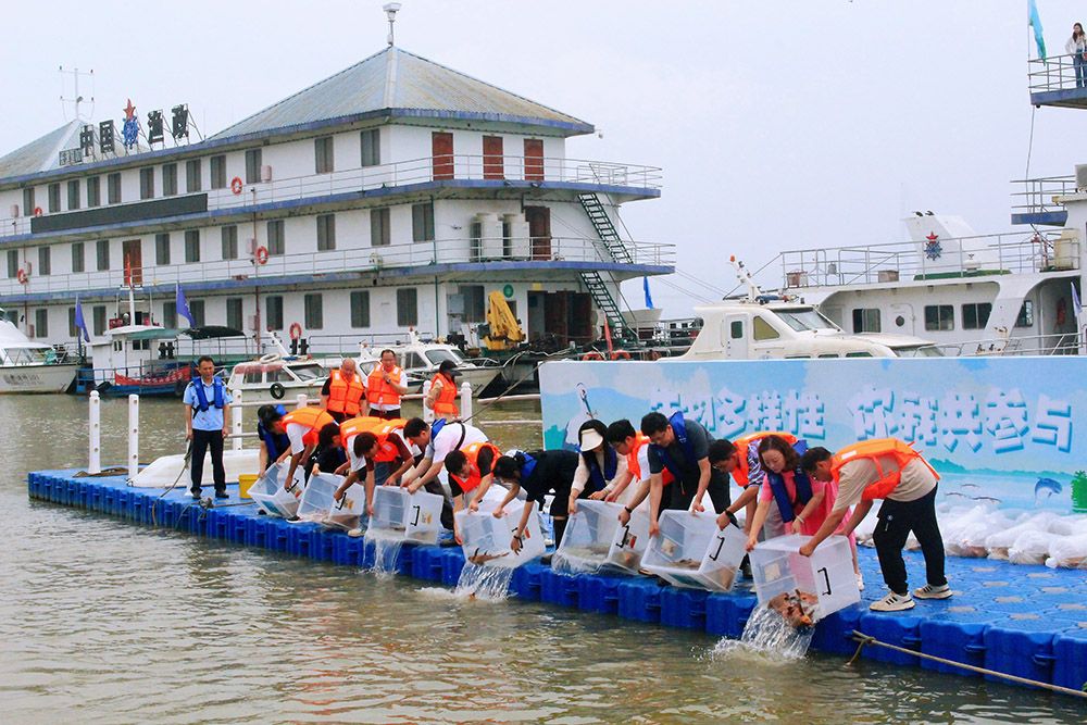 伴随着一声“放”,参加活动的领导嘉宾、工作人员和志愿者一起将盛有成鱼和鱼苗的氧气袋打开,轻轻倾倒至波光粼粼的江面,一尾尾鱼儿一跃而下,迅速向深水处游去,活力十足。本次放流5万余尾成鱼、鱼苗,包括胭脂鱼、青鱼、长吻鮠等鱼类,有利于提升长江流域水生生物种群数量,修复长江水生生态环境。