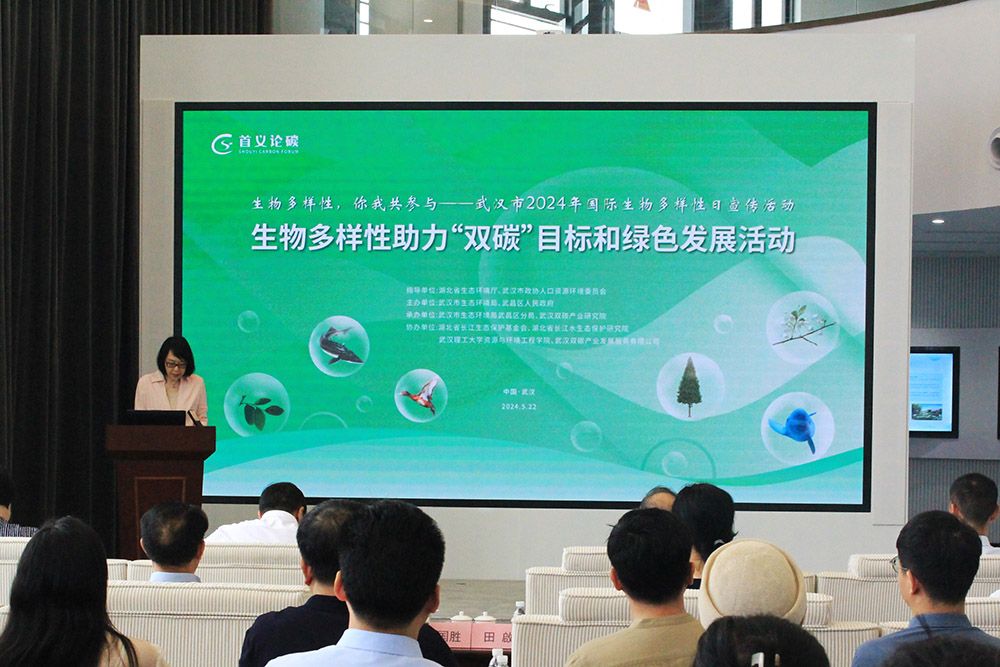 活动还设置了首义论碳·生物多样性助力双碳目标和绿色发展的环节。湖北省长江生态保护基金会副理事长王利民,湖北省长江水生态保护研究院执行院长、武汉中科瑞华生态科技股份有限公司总裁杨琳分别就“城市化进程中的生物多样性的保护”和“双碳战略下的水生生物多样性保护实践”主题做演讲。