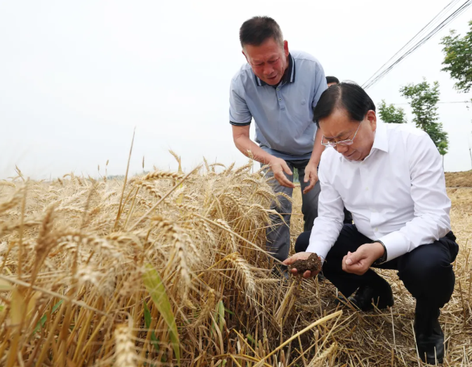 在老河口市李楼镇付堤村,农机穿梭、麦香四溢,一派丰收景象。王忠林听取老河口市“三夏”工作情况汇报,走进麦田察看小麦饱满度和土地墒情,与种粮大户交流、算投入产出账。他要求党员干部下沉一线服务,加强农机组织调度,不误农时抓好抢收作业,确保颗粒归仓;落实夏粮收储政策,保护农民种粮积极性,引导更多农户通过适度规模经营实现种粮致富;压茬推进夏播夏管,保障好种子、化肥、农药等农资供应,强化病虫害监测防治,确保稳产丰产。