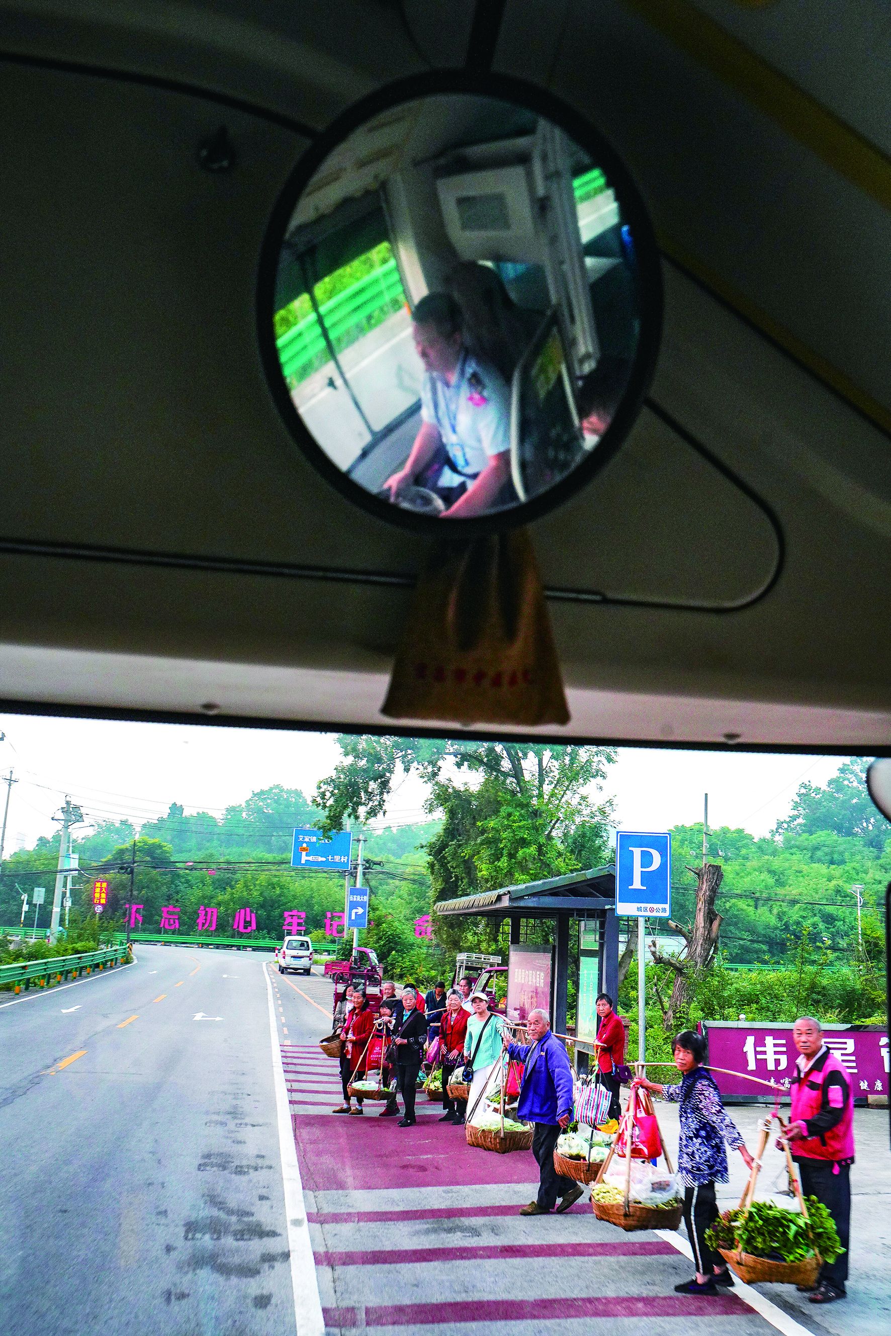 5时49分,一束灯光照亮马路,人群热闹起来。“车来了,大家赶紧收拾东西!”“您莫慌,先把扁担取了。”车一停稳,大家纷纷奔向车门。