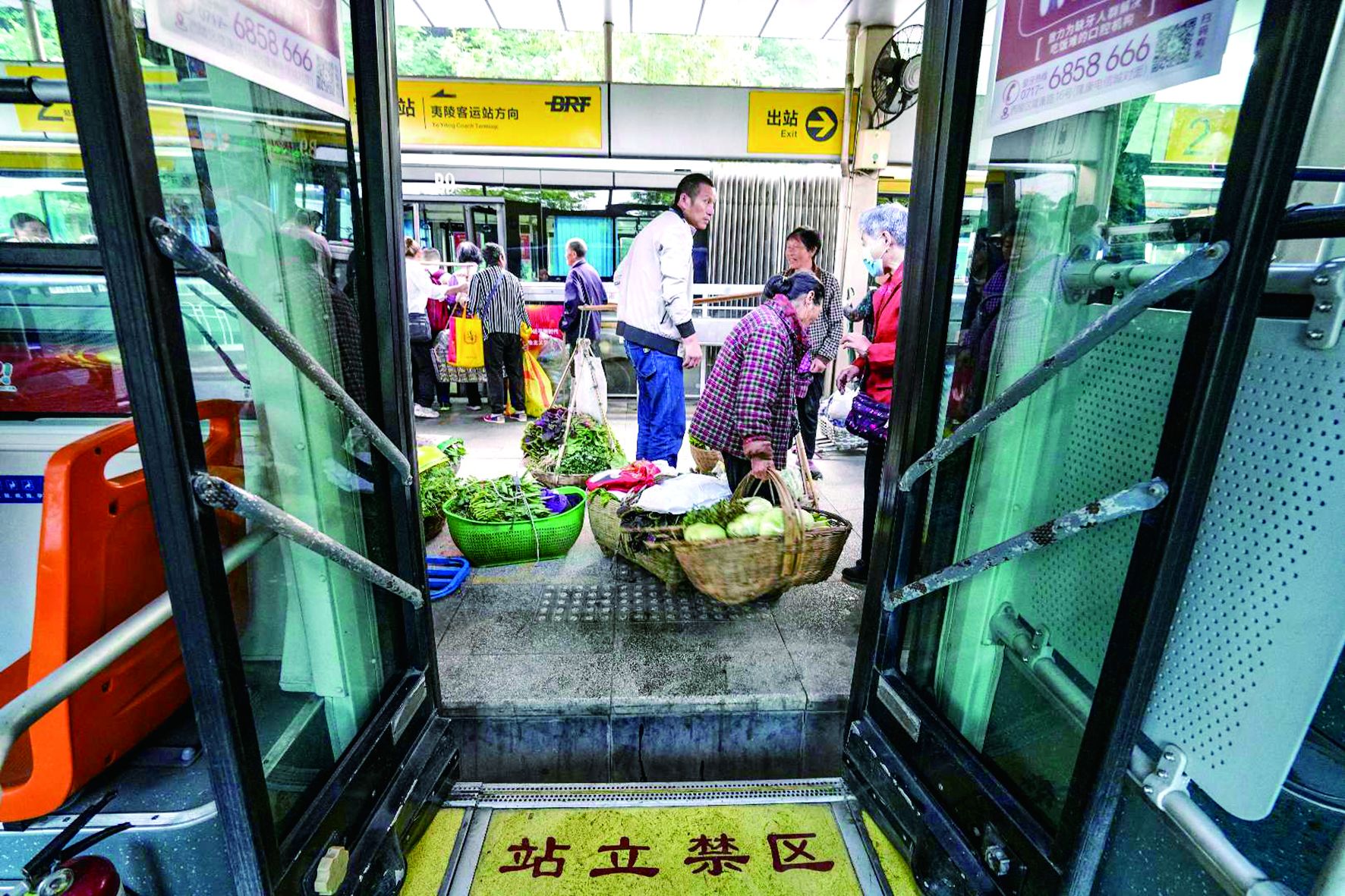 6时43分,阳光已有些耀眼。经过近一个小时车程,“专车”进入市区,在王家河站迎来下车高峰,可下车也并不容易。“我的枇杷呢?帮忙递一哈!”“这个装青椒的篓子是哪个的,下不下?”“这个筐子帮忙抬起来”……车上、车下接力,大家先将篮子、筐子等传出去,挪出空位再走人,最终顺利下车。