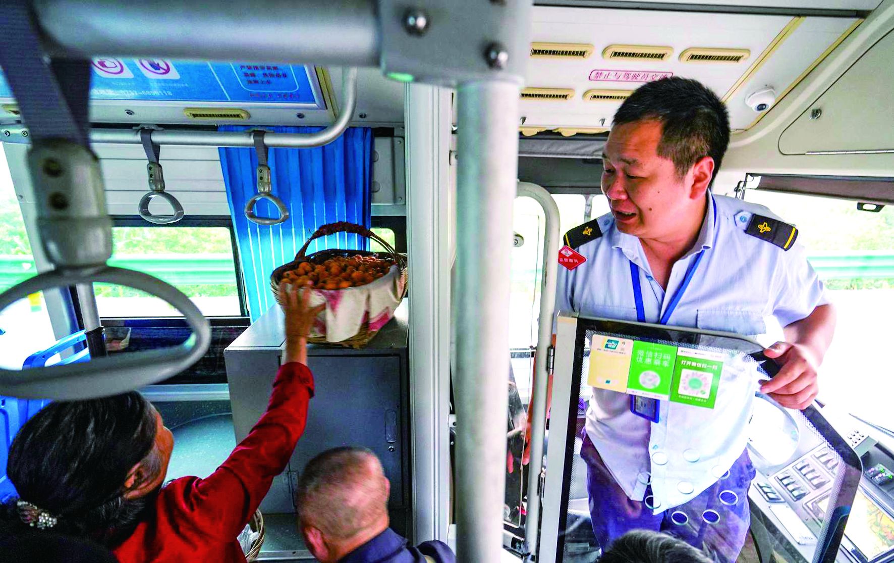 乘客越来越多,各个站点的停车时间也被拉长。“在城区30秒停车时间足够,可这趟车人多货多,我们多等一下,尽量让大家都能坐上车。”王云解释道。