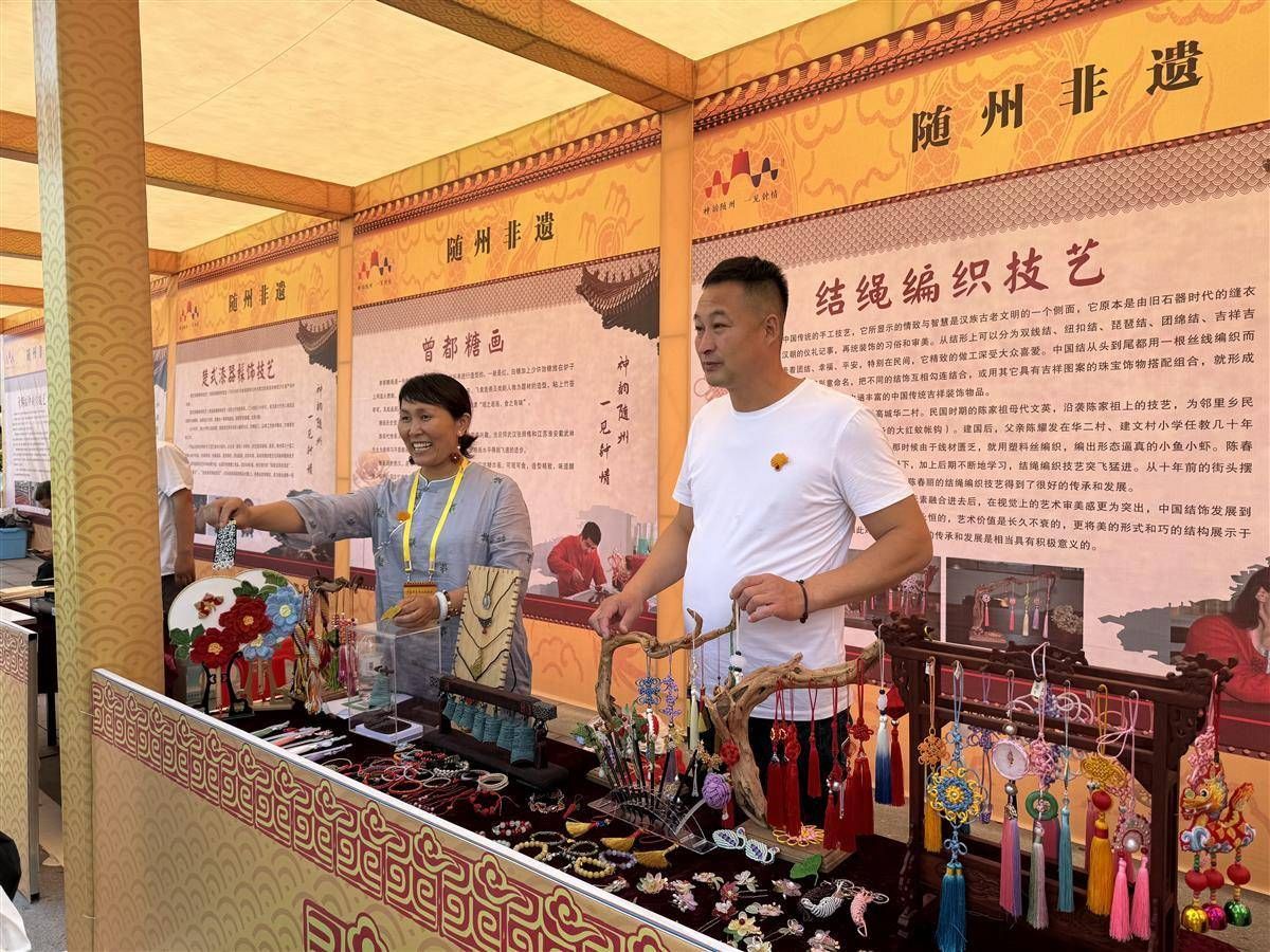 “这是我们手工编制的结绳,是随州本地的一项非遗技艺。”活动现场,随县陈氏编织传承人陈春丽正向游客介绍自己的编织作品。随县文化和旅游局副局长舒明介绍,随县还将在6月2日举办非遗特色展演,组织九莲灯、板凳龙、打硪号子、义阳大鼓、随州慢板等特色非遗节目展演,为群众们带来非遗视听盛宴。