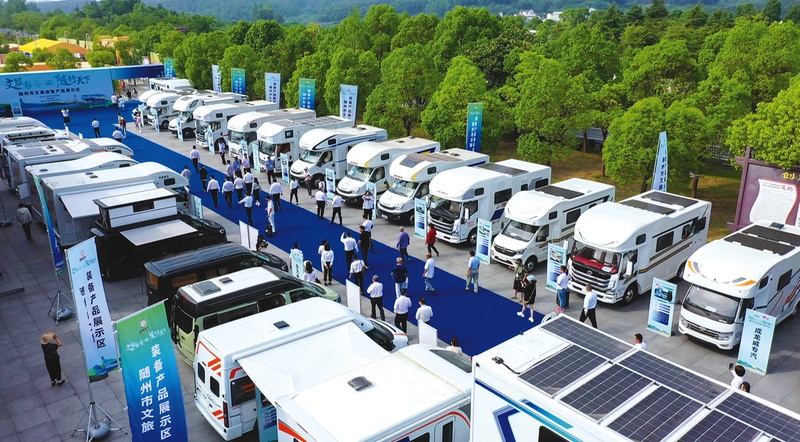 寻根节期间,随州市汽车行业协会组织了11家房车企业共60台精品房车参加随州文旅装备展。图为6月1日房车展示现场。(随州日报全媒记者李文军摄)