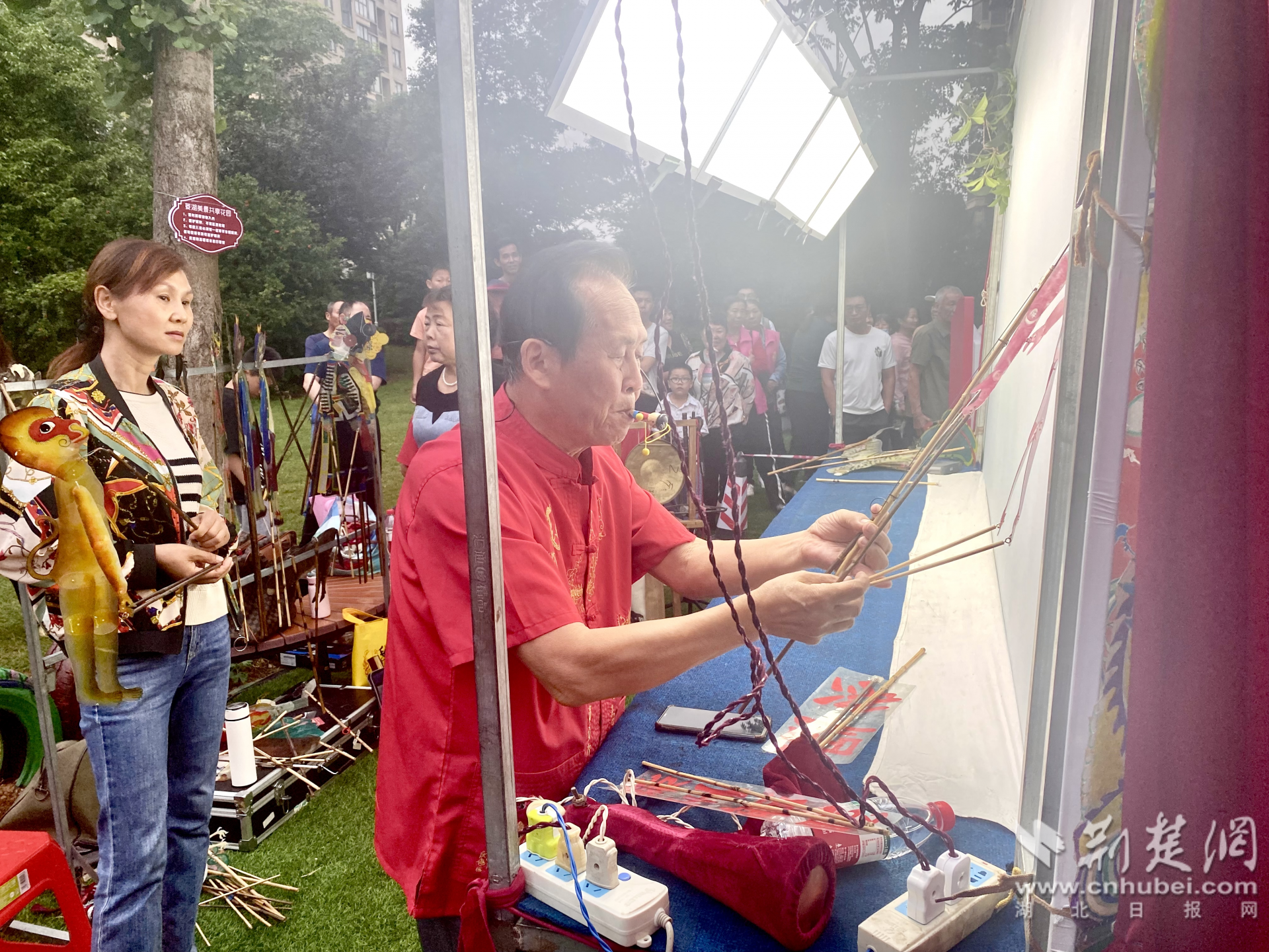 荆楚网(湖北日报网)讯(通讯员 陈保忠 )5月31日,云梦皮影大师秦礼刚带领团队,在武汉市菱湖美景小区拾光共享花园演出传统皮影剧目:《武松打虎》和《猴王借扇》。武汉科技大学部分学生和该社区居民观看演出。观众中有上到八九十岁的老人,下到二三岁的娃娃,共计二百多名观众在现场观看演出。