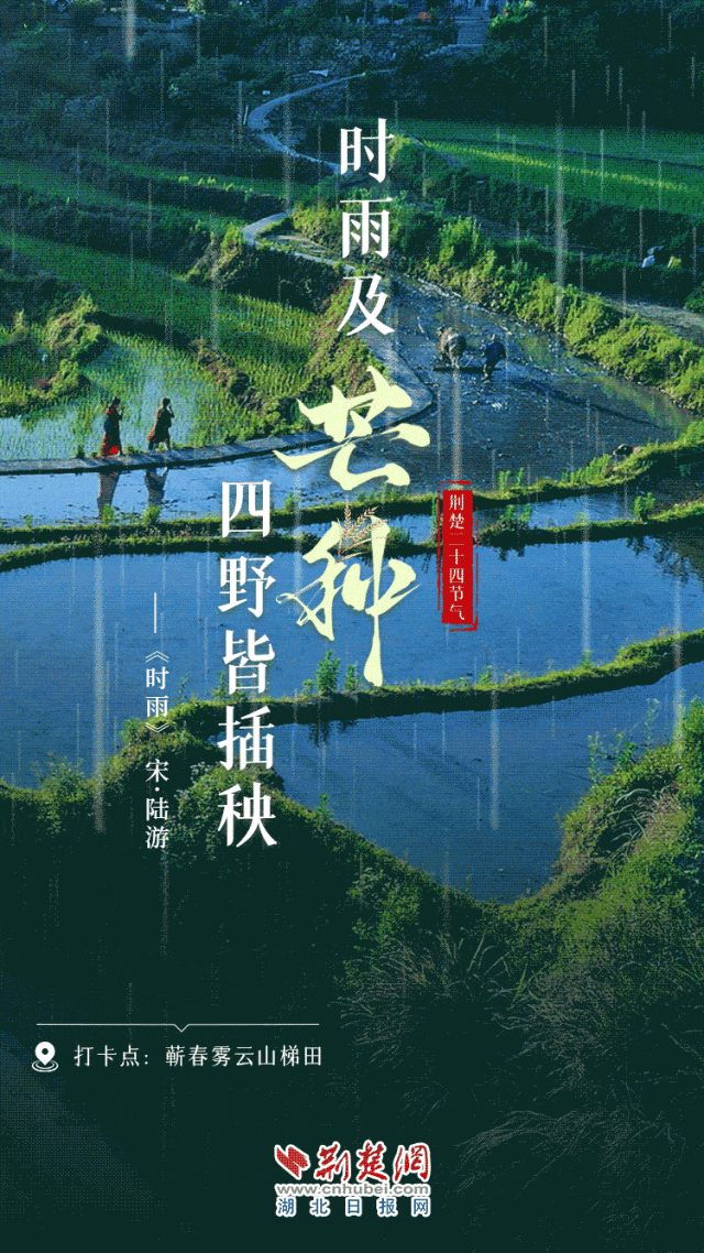 芒种一到,该收的收,该种的种,忙忙碌碌,乐乐呵呵。这“忙并幸福着”的场景,南宋大诗人陆游是这么写的:时雨及芒种,四野皆插秧。家家麦饭美,处处菱歌长。