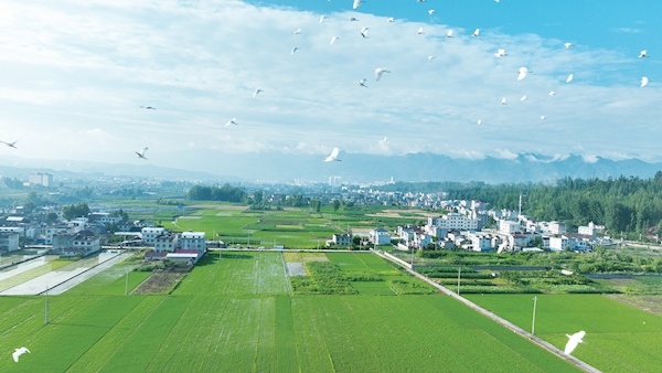 初夏时节,房县红塔镇邓营村成片的稻田就像一块碧绿的翡翠镶嵌在大地上,蓝天、白云、青山、翩跹的白鹭与秀美的村庄构成了一幅美丽的田园画卷。近年来,房县围绕“净、清、齐、美”目标,完善基础设施,改善人居环境,积极打造生态优、产业兴、乡村美的“和美乡村”,越来越多的乡村面貌焕然一新,群众获得感、幸福感不断提升。特约记者张启龙摄