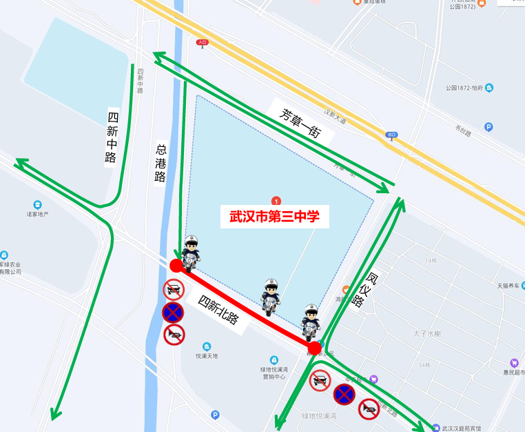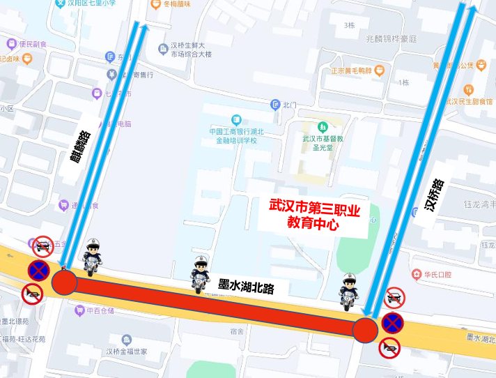 武汉市第三职业教育中心周边临时交通管控示意图