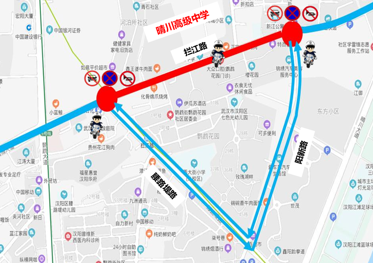 武汉市实验学校周边临时交通管控示意图