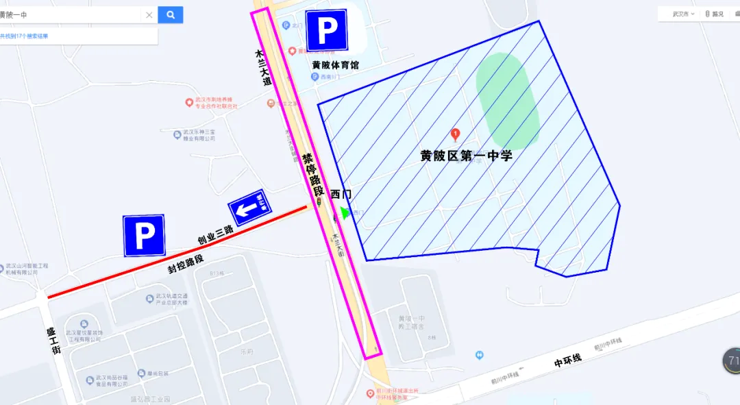 一、黄陂一中:校门前禁止机动车、非机动车停放,接送考生车辆需驾驶至创业三路双侧依次有序停放。