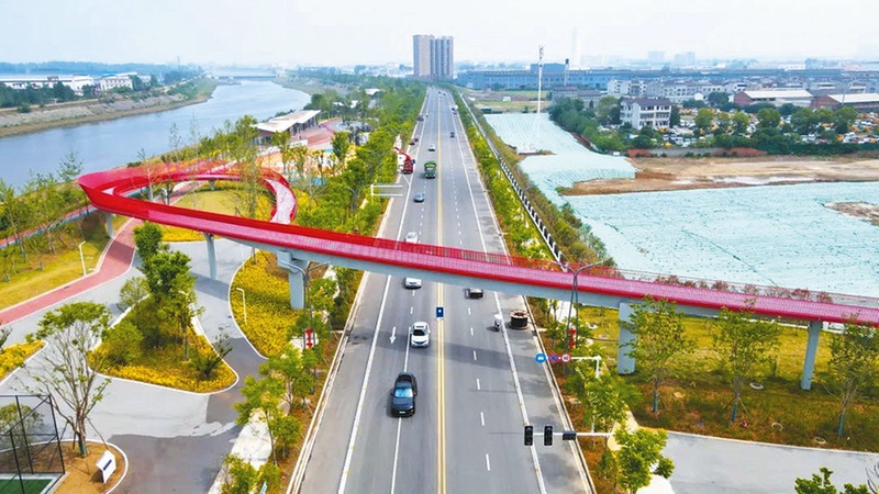 6月1日,曾都区㵐水河东岸生态环境提升工程项目沿河大道道路全线开通。 (随州日报通讯员洪瑞摄)