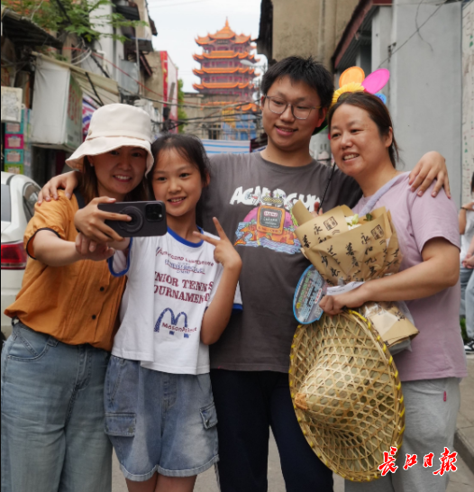 6月9日傍晚,2024年高考结束后考生和家长来到武昌得胜桥老街拍照留影。 记者何晓刚 摄