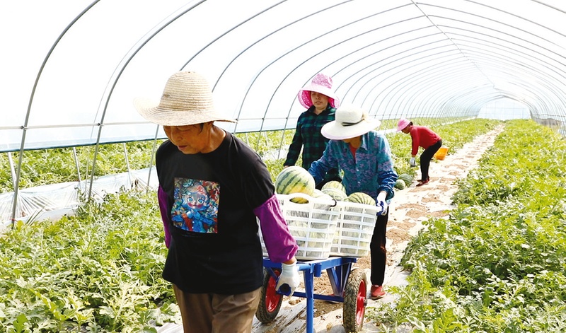 西瓜收成好,不仅增加了集体经济收入,也吸引了周边村民来基地就业。从种植到采摘,基地需要大量工人帮忙整枝、摘瓜、装箱,可提供就业岗位100余个,每人日均工资能达到80元。“来基地干活,不光能挣钱,还能照顾家里。”正在大棚忙活的双星村村民王铃高兴地说。