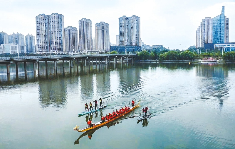 6 月 10 日,白云湖上一场精彩绝伦的水上竞技激情上演!看,随着激昂的鼓点,龙舟、龙板、桨板飞速划行在波光粼粼的湖面上。龙舟上的健儿们齐心协力,喊着整齐的号子,奋力划桨。龙板和桨板也不甘示弱,在水面上快速穿梭,展现着速度与激情。湖边围观市民的欢呼声此起彼伏,一同为选手们加油助威!(随州日报全媒记者李文军摄)