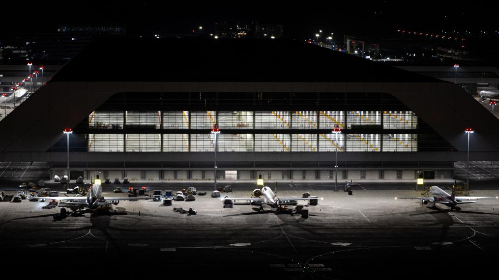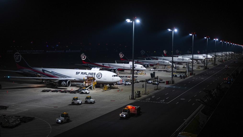 6月2日凌晨拍摄的鄂州花湖国际机场停机坪一角。