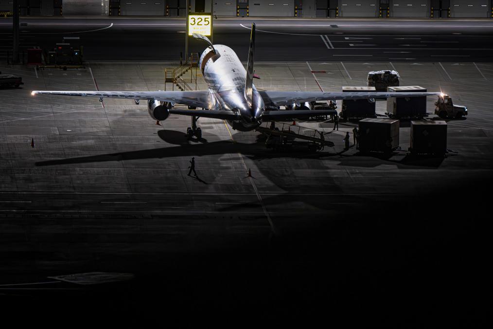 6月2日凌晨,货机缓缓进入鄂州花湖国际机场停机坪准备卸货。