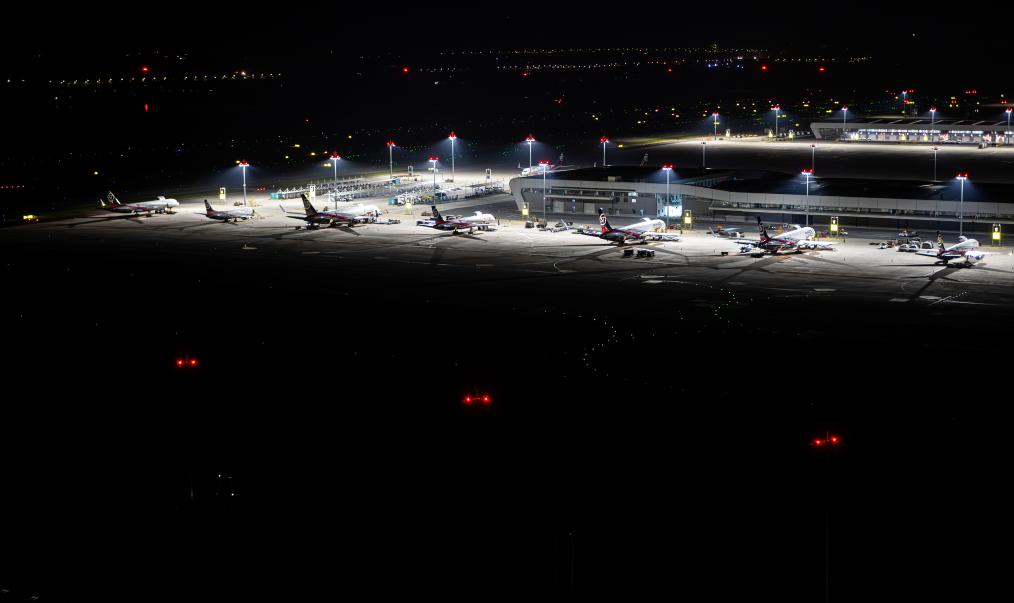 5月25日凌晨拍摄的鄂州花湖国际机场停机坪一角。