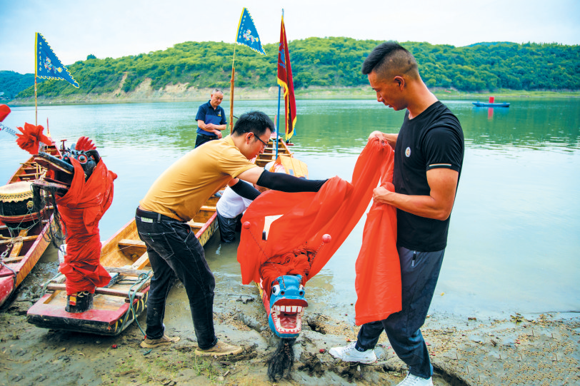 郧阳区柳陂镇的韩家洲是一座千年小岛,地处堵河与汉江交汇处,像一条鲤鱼横卧江心。因其扼汉江、堵河两水要害,是历史著名的古战场,相传刘邦、项羽争霸时曾在此征战几十回,岛上至今流传着“韩信埋母”的故事。韩家洲上的原居民都姓韩,尊崇韩信。2010年,因南水北调中线工程,岛上居民全部外迁至随州市随县。寻根问祖,追思念旧,是刻在中国人骨子里的情怀。从随县万福店农场到郧阳区柳陂镇,龙船犹如一根无形的丝线,把人们聚拢在一起。