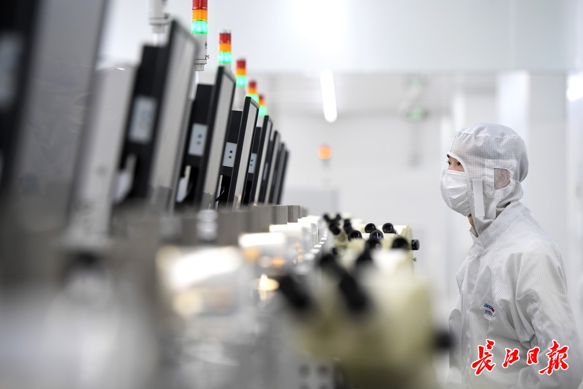 武汉光迅科技股份有限公司高端光电子器件产业基地,工程技术人员正在工作。记者 周超 摄