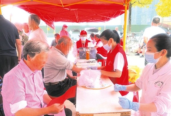近日,曾都区北郊社区卫生服务中心深入星光社区开展义诊活动,为居民们提供了免费健康体检和健康咨询服务,并给予专业个性化的健康指导。(随州日报通讯员 钦海鹰 白露摄)