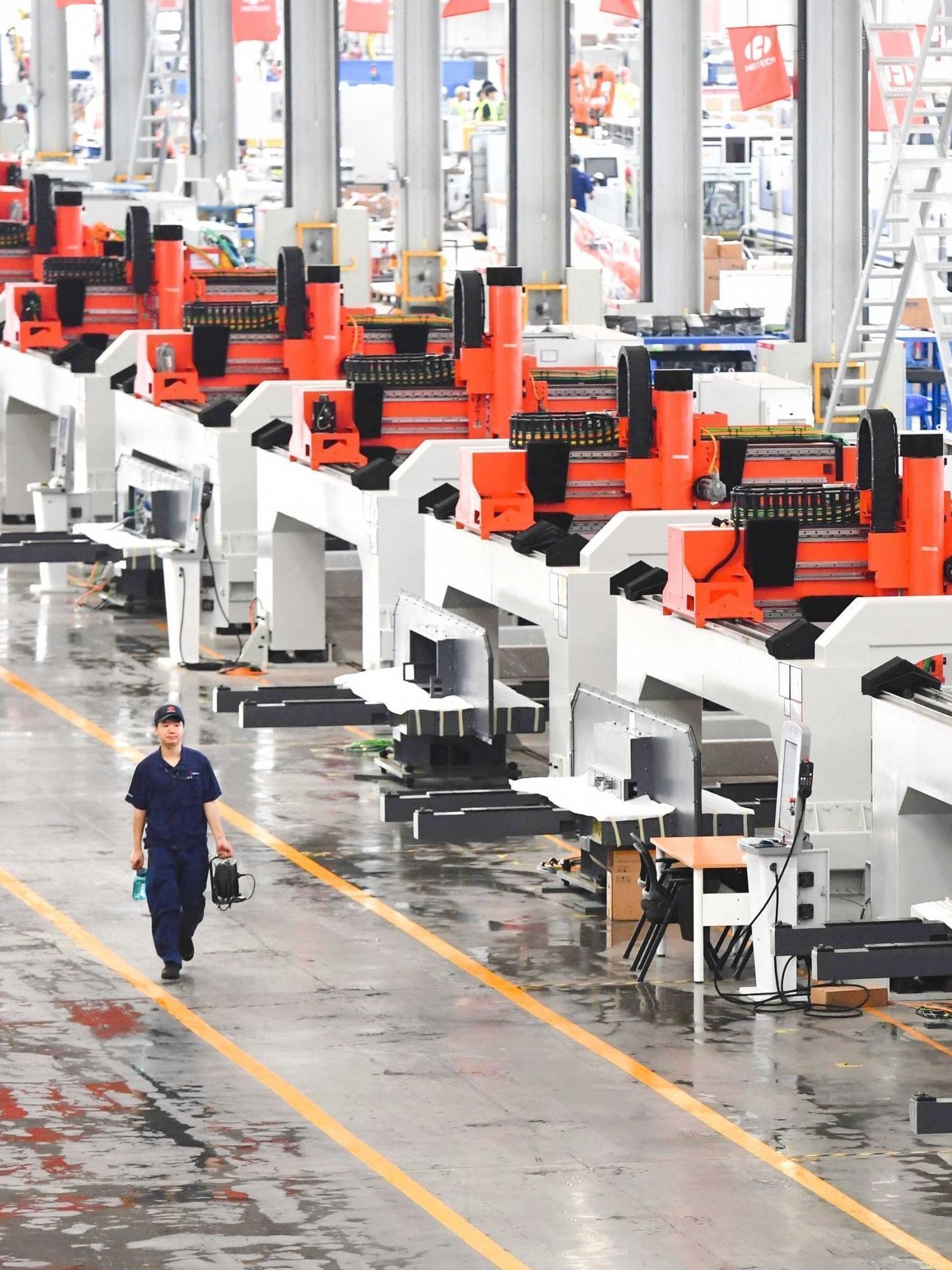华工激光智能装备事业群的三维五轴产品线。 长江日报记者 高勇 摄